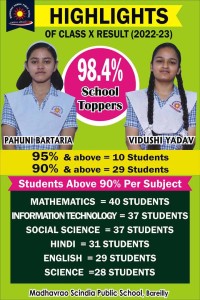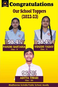 We warmly welcome you to Madhavrao Scindia Public School, the institution committed to imparting quality education, and providing the very best facilities and environment, conducive to imbibe values, acquire knowledge, to pursue goals of education. Highly qualified and experienced team is there at Madhavrao Scindia Public School to provide an innovative educational input. The phenomenal results outside, achievements in sports, co-curricular, and academics, have brought the school to a pedestal.
